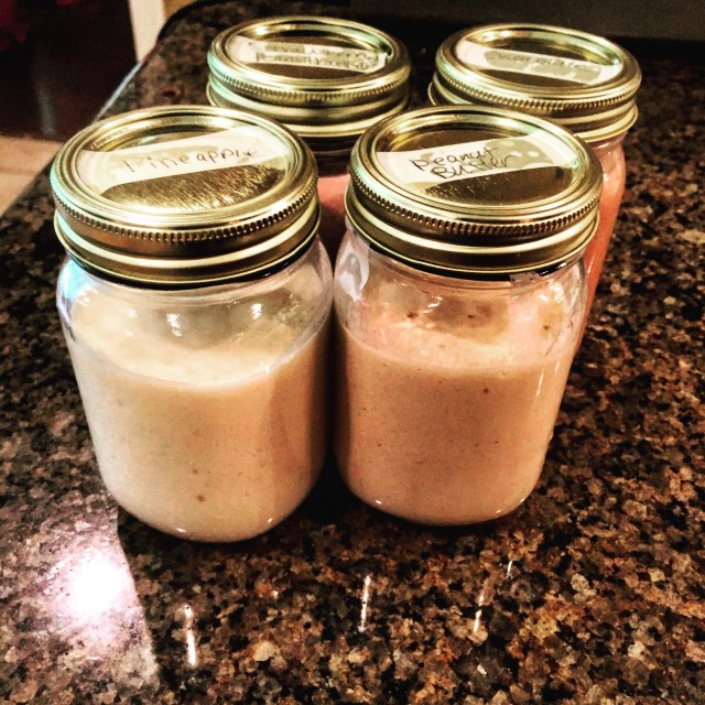 There is a 12 pack of 16 oz jars at Walmart for $12.87. You will also need ingredients for your smoothies; my smoothie ingredients include peanutbutter, almond milk, and vanilla protein powder.