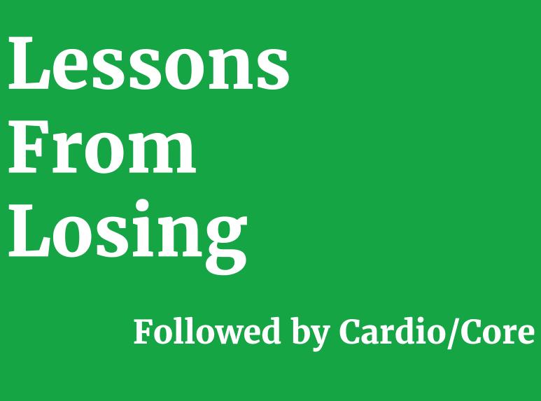 Daily Word You learn more from a Loss than you do when you Win. Listen to Pastor Cymbala speak about the Lessons From Losing. http://btdownloads.edgesuite.net/sermons/2012/2012_01.01.12_Lessons_From_Losing.mp3 Daily Fitness Home & Gym AMRAP 8 minutes, no rest, as many rounds as possible for each circuit Circuit 1 Jumping Jacks -40 Bird Dogs-15 Tuck Jumps-15 Russian Twists-15 Circuit 2 …